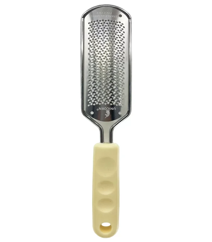 ابزار ها و وسایل بی شماری برای پدیکور و کفسابی پا موجود می باشد که رنده پا یکی از این وسایل است و در انواع گوناگون موجود می باشد، از این رنده پای دسته پلاستیکی دنده ریز برند یونیکورن برای از بین بردن پوست های ضخیم و خشک کف پا، از بین بردن لایه های مرده و کفسابی استفاده می شود و کیفیت بسیار بالایی دارد و به راحتی کند نمی شود و با دسته بسیار مقاوم پلاستیکی برای پدیکور حرفه ای در سالن ها یا منازل بسیار مناسب است.