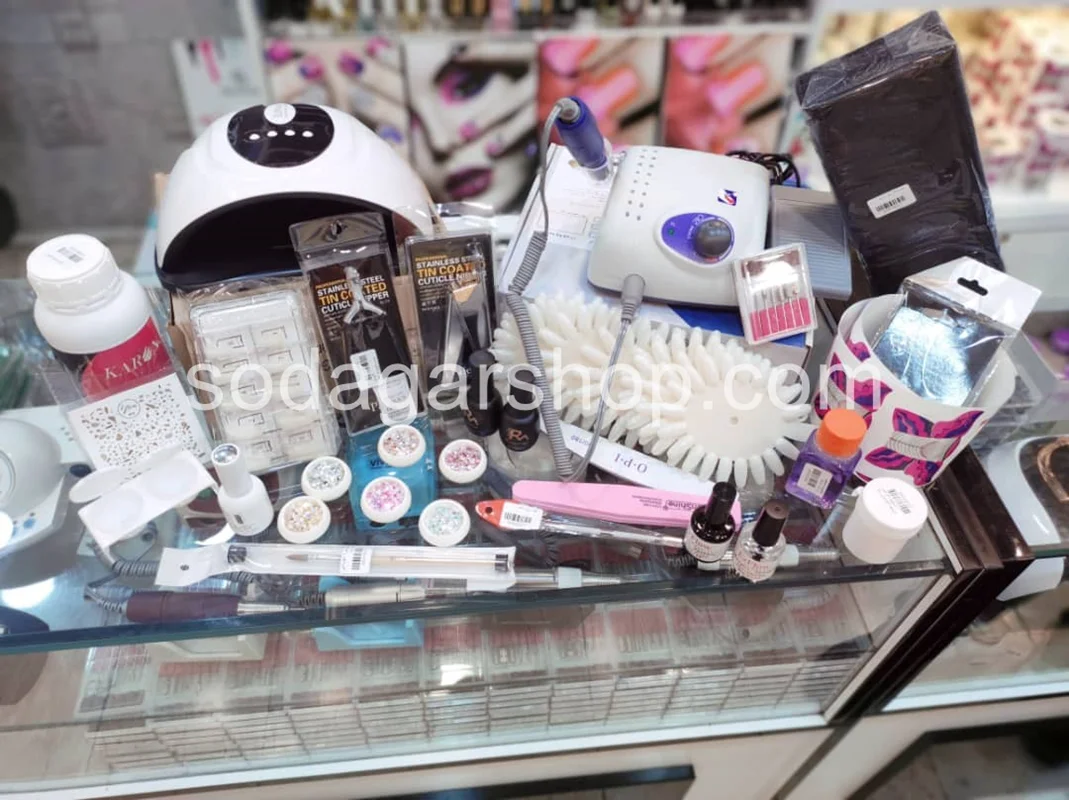 وسایل لوازم کاشت ناخن فول کامل حرفه ای با سوهان برقی استرانگ 207 (لاین مواد مصرفی پودر)